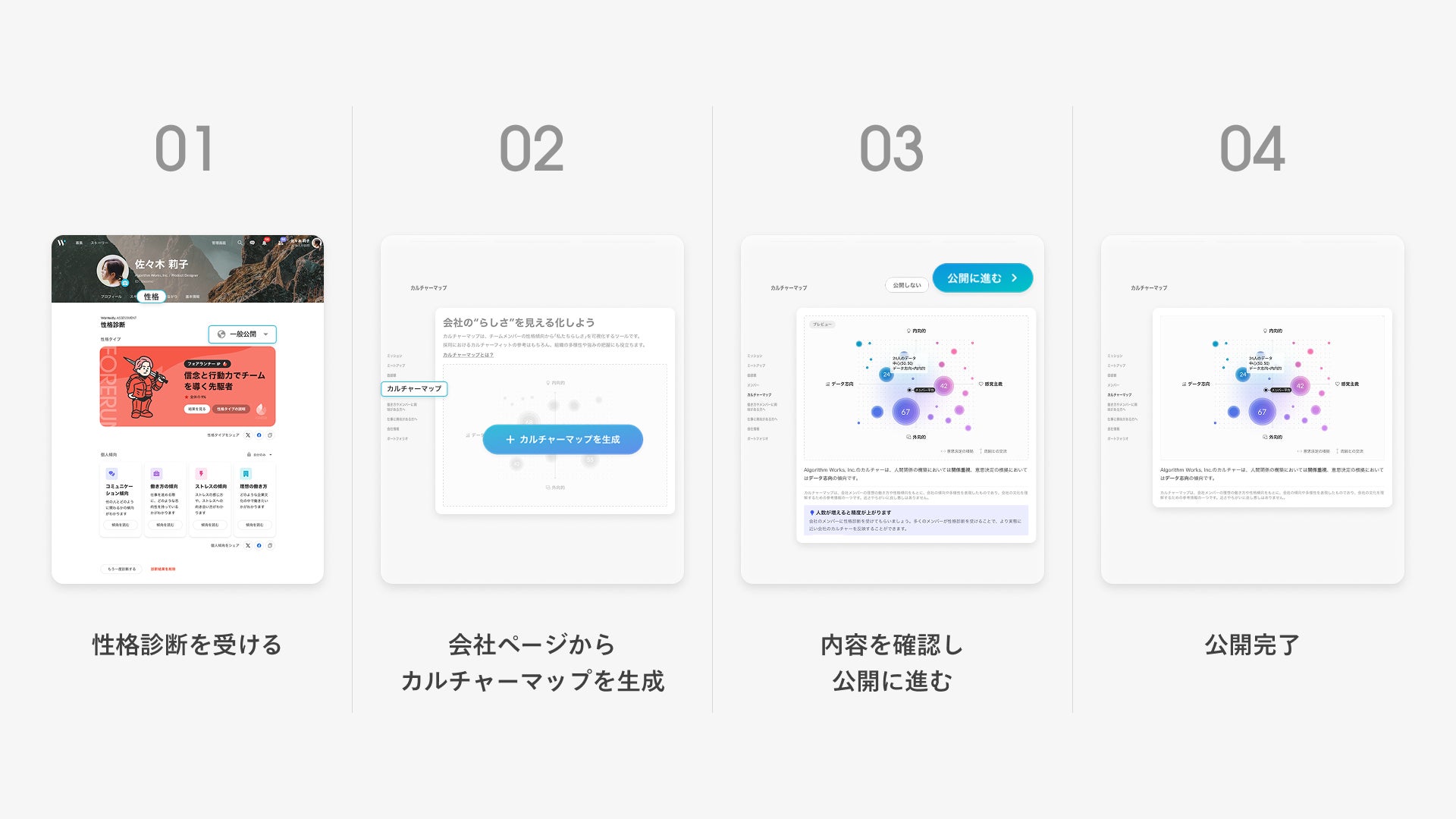 カルチャーマップの作成から公開までは、4ステップで完了します。