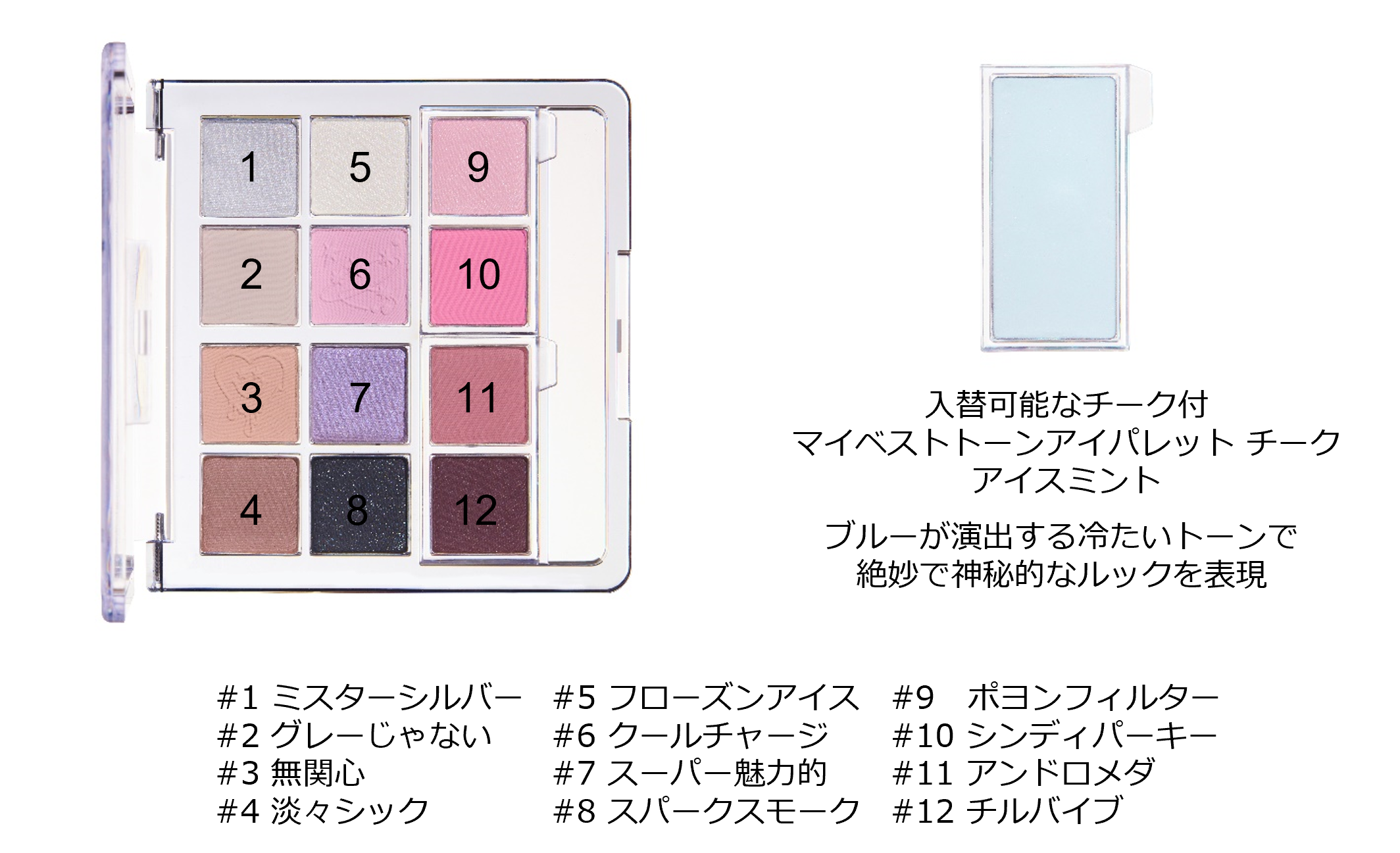 ラメ2色、マット10色の12色パレットで日常使いにぴったりな配色。