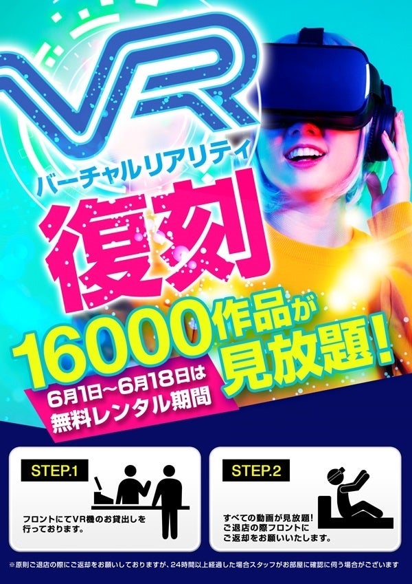 ご入店の際に受付スタッフへ「VR」の利用希望を申告することで無料レンタルができます。