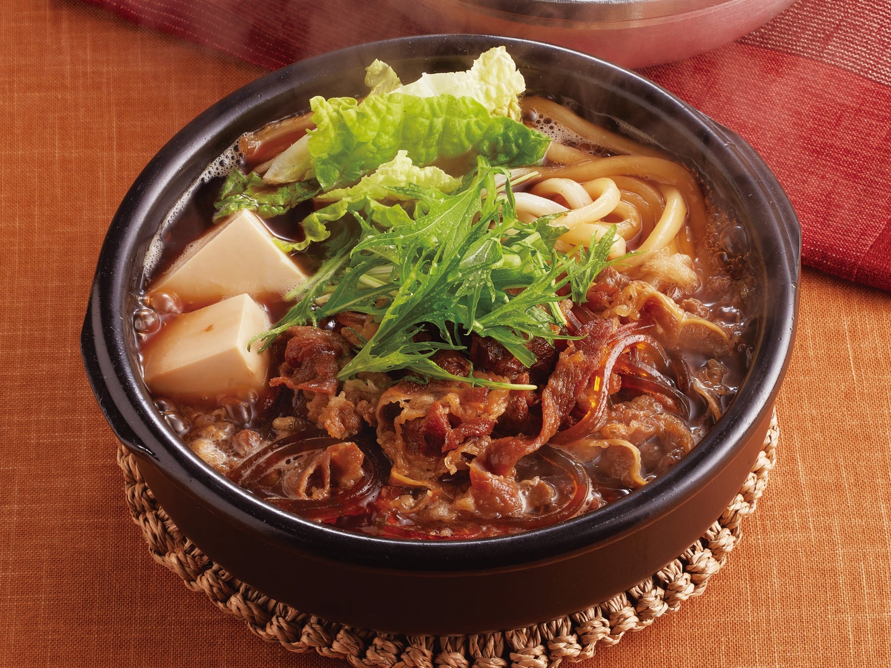 ジョイフル人気の鍋メニュー。特製割下が具材にしみ込み、食欲をそそります。卵を絡めてお楽しみください。