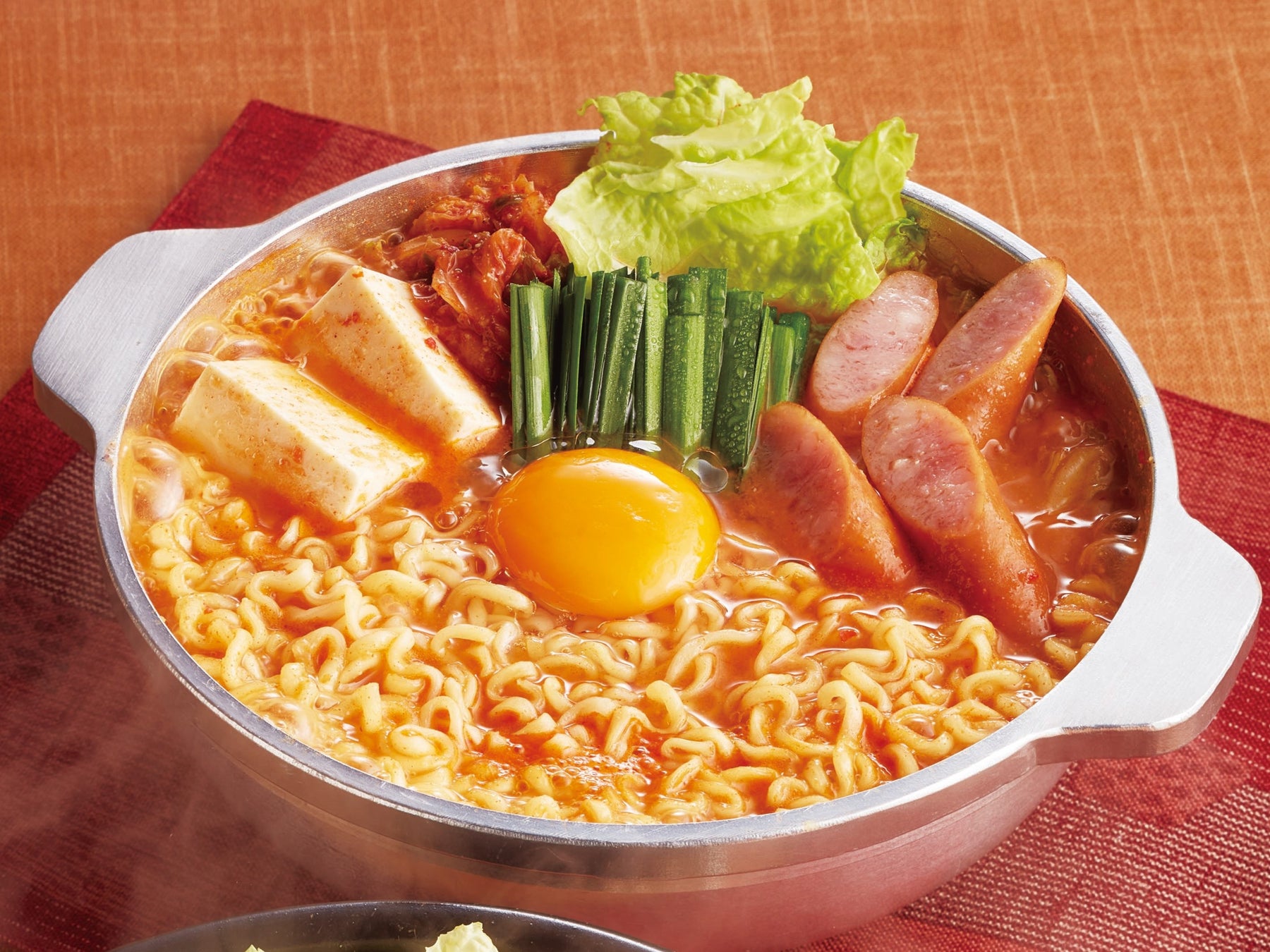 韓国好きにもオススメ!海鮮だしが効いたスープとサリ麺が相性抜群の、旨辛キムチチゲです。