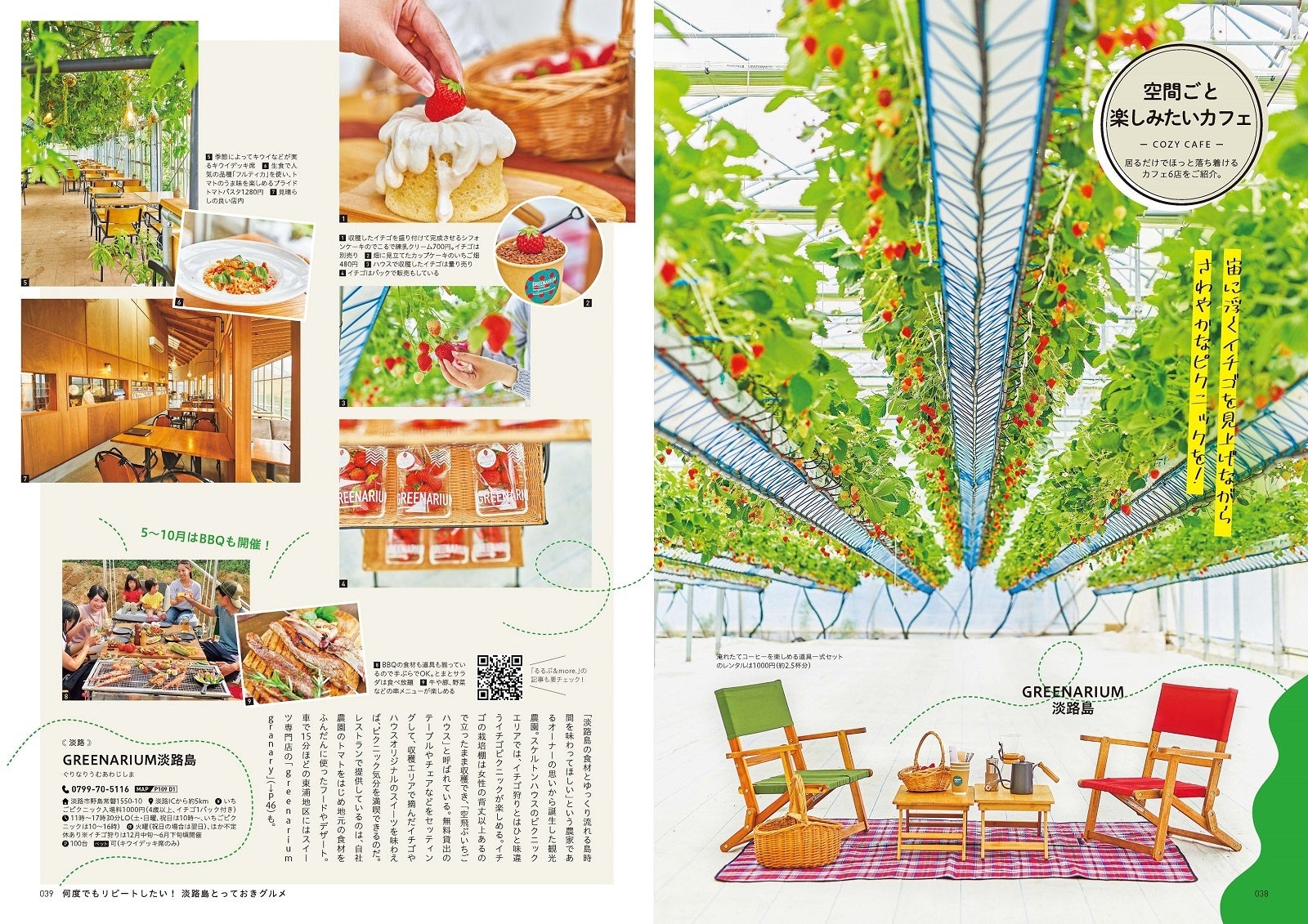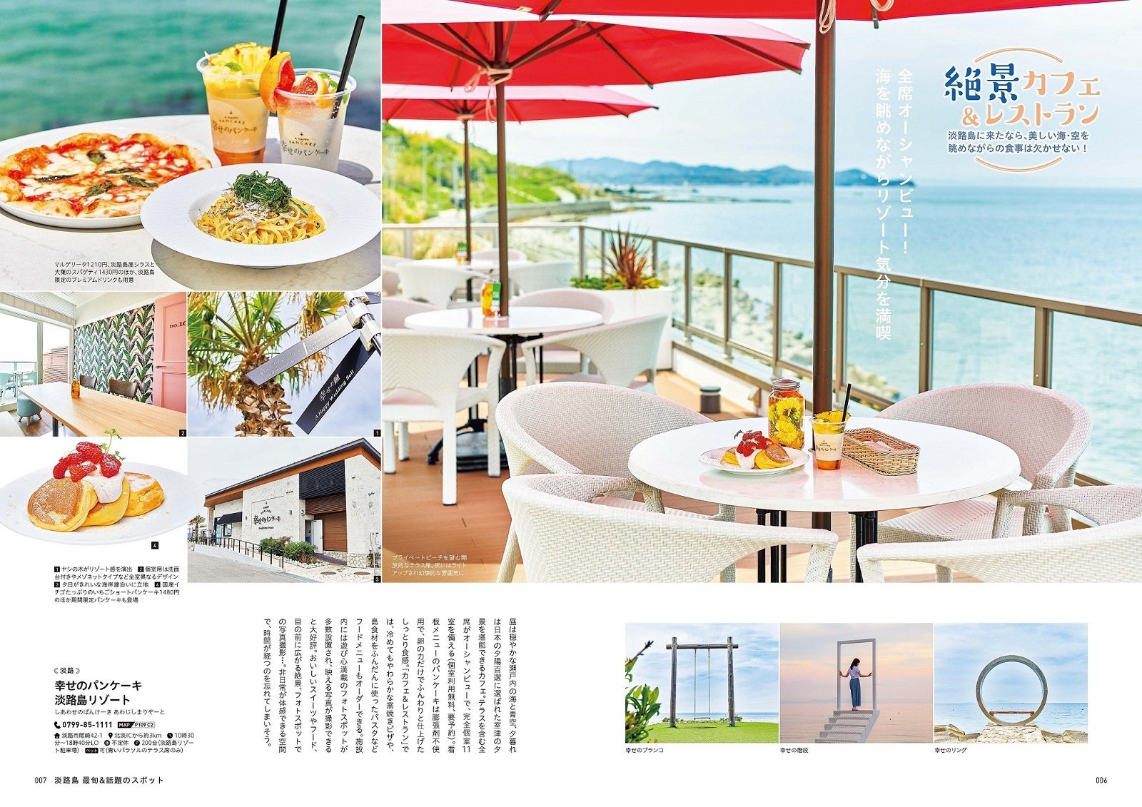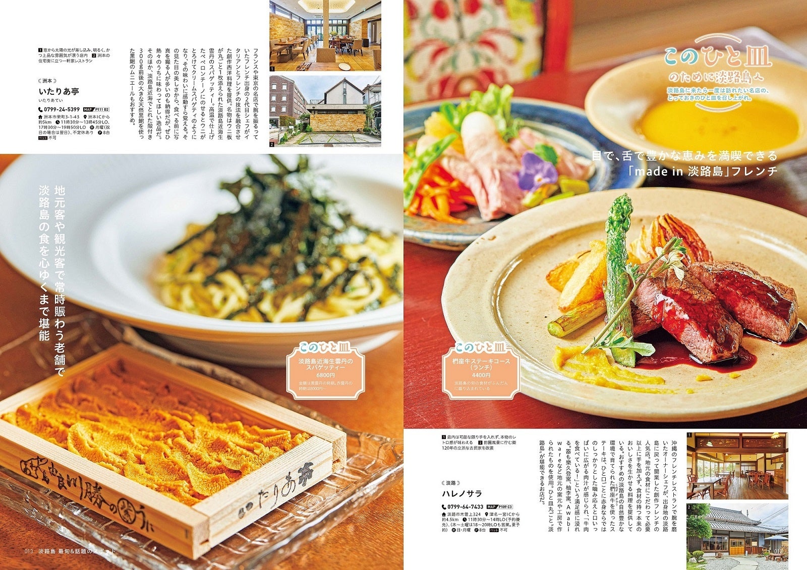 巻頭特集では、「絶景カフェ&レストラン」「このひと皿のために淡路島へ」「贅沢時間を過ごす最旬ホテル」という3つのテーマで、今最もおすすめするスポットを紹介しています。