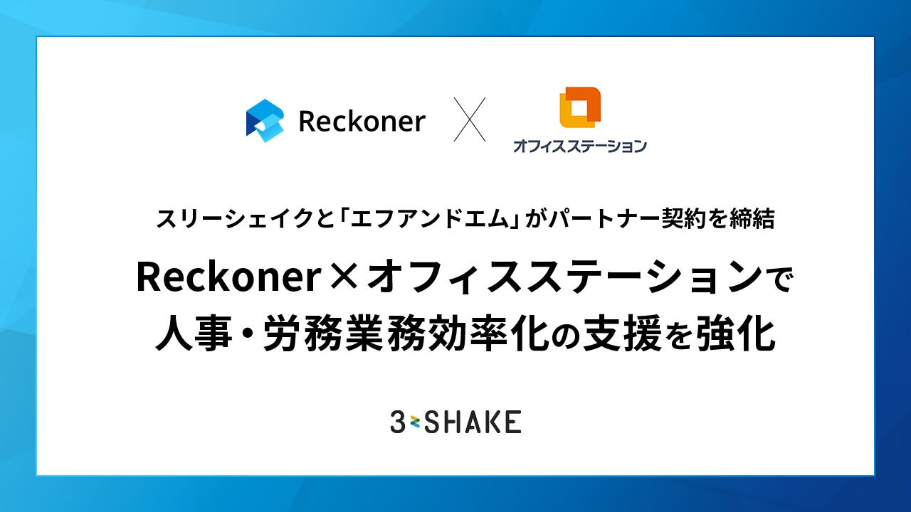 スリーシェイクと「エフアンドエム」がパートナー契約を締結、Reckoner × オフィスステーションで人事・労務業務効率化の支援を強化
