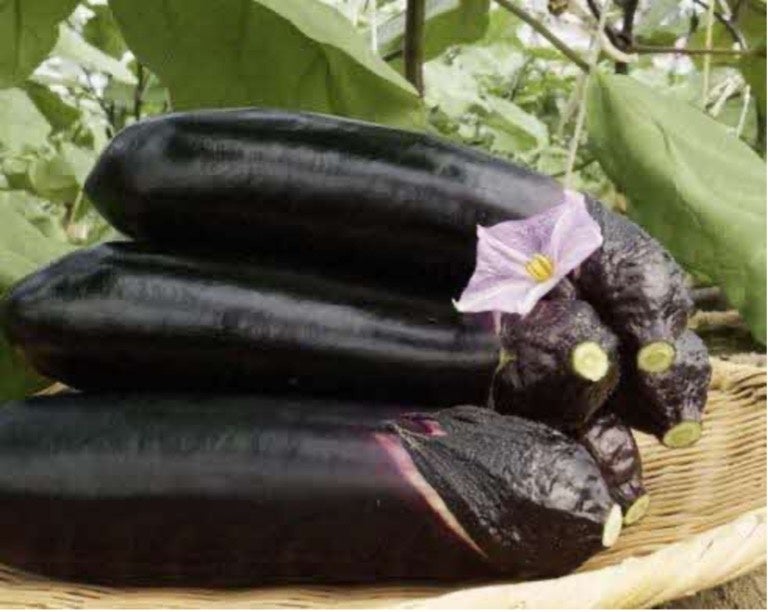 全国市町村で第1位の作付面積を誇っており、主にビニールハウス等の施設内で、高品質のナスが安定的に生産されています。主力品種は長なすの「PC筑陽」でつやのある黒紫色が特徴です。また、実の長さが60㎝以上にもなる「大長なす」なども生産されています。