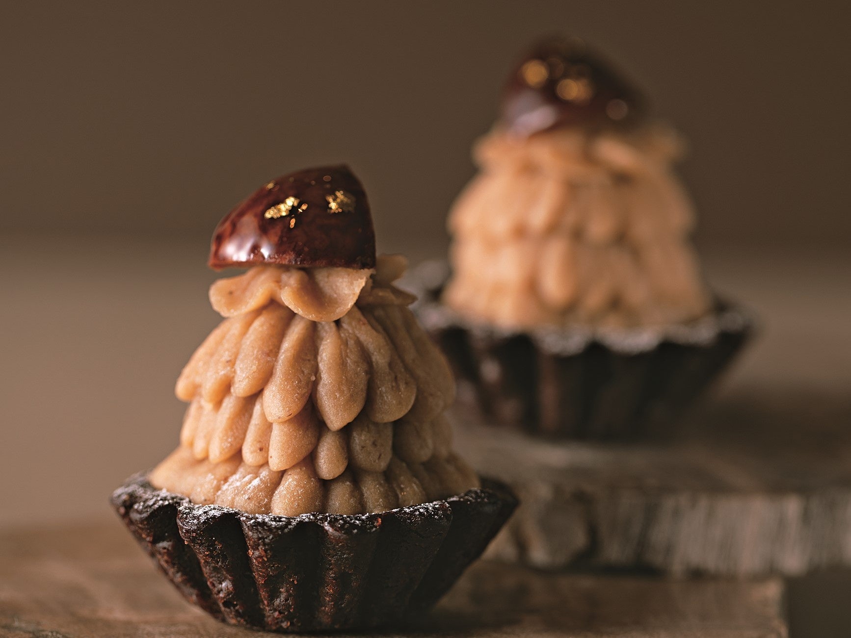ビターなココアタルトとマロンチョコクリームで、味に深みとアクセントを加えています。キュートな見た目も映える秋スイーツ。