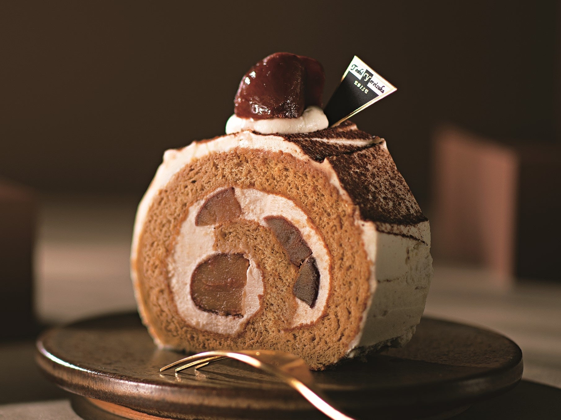 大きめにカットした熊本産の和栗とマロンクリームを使ったロールケーキは、まさに秋満載。