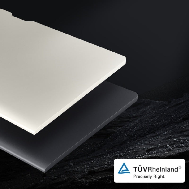 天板には粉体塗装を採用し、指紋が付きにくく、光の反射を抑えたマットな質感を実現。長時間の作業でも快適な視認性を保ちます。さらに、ホルムアルデヒド放出量は0.02mg/m²未満で、第三者認証機関であるTÜV Rheinlandの試験もクリアしています。