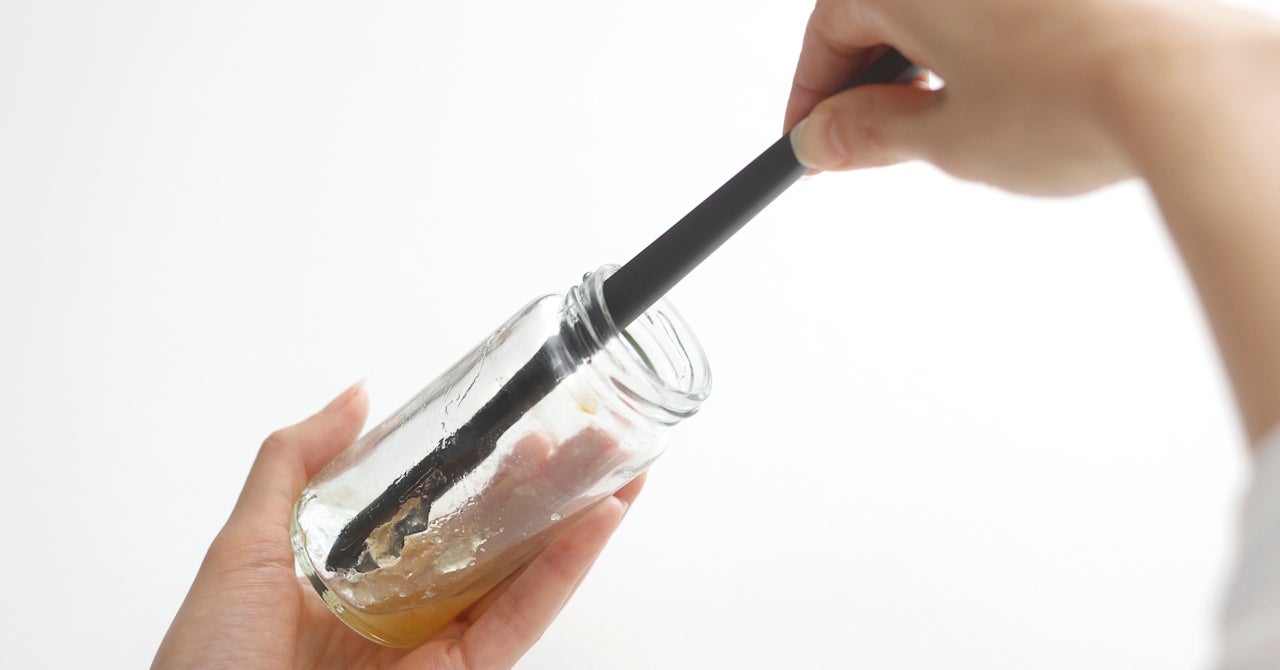 細い瓶や狭い容器のすみまですくえる、スリムなスパチュラ