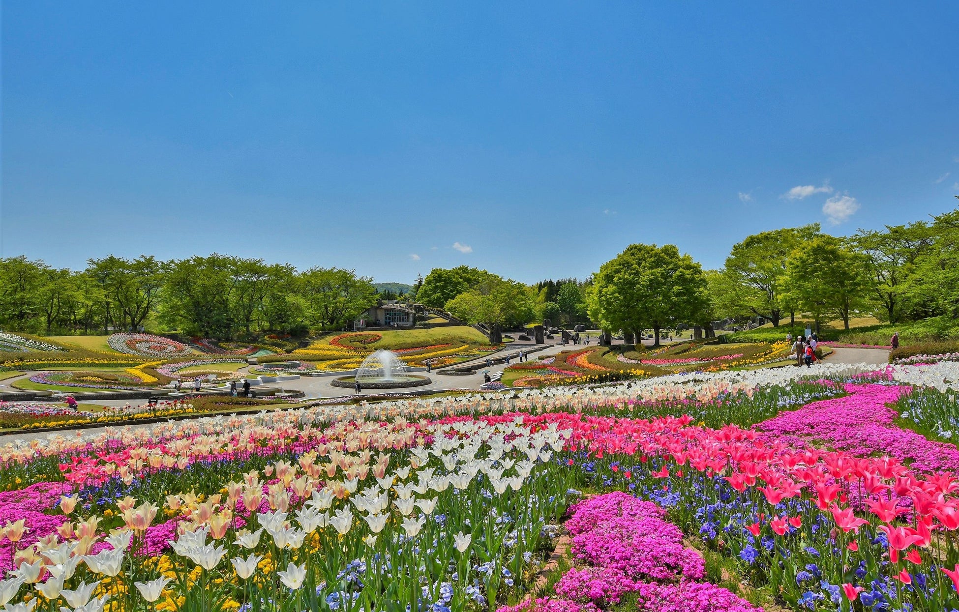 釜房ダムの湖畔に位置する東北唯一の国営公園。平成元年8月の開園以来、「みちのく公園」の愛称で親しまれ、蔵王連峰を背景に広がる敷地は総面積647.4haにも及びます。美しい大花壇や大型遊具、東北6県の古民家が移築された「ふるさと村」などがある南地区、「エコキャンプみちのく」や「自然共生園」、「ドッグラン」などで気軽にアウトドアやアクティビティが楽しめる北地区、豊かな緑が広がる里山地区の3つのエリアに分かれています 。令和6年4月26日には開園以来の累計入園者数が2,000万人を達成しました。