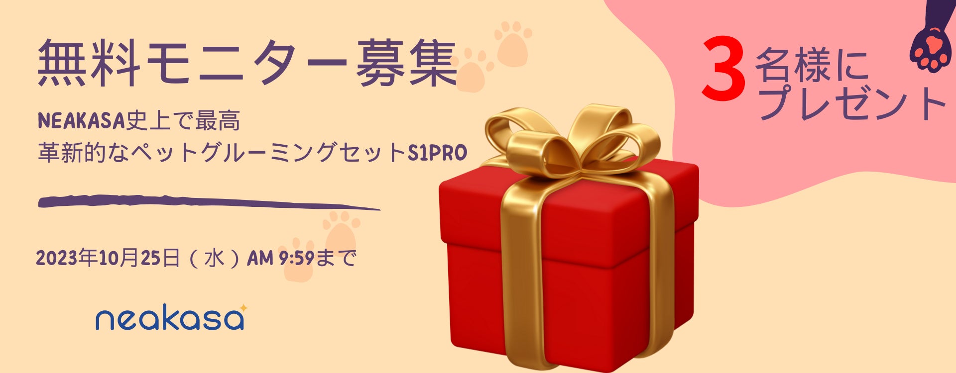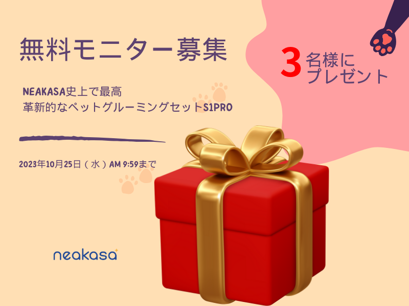 現在、Neakasa(ネアカサ)公式サイトでペット飼いの悩みなどを投稿すると、新発売予定のNeakasa史上で革新的な「ペットグルーミングセットS1 Pro」の無料モニターに募集できます。