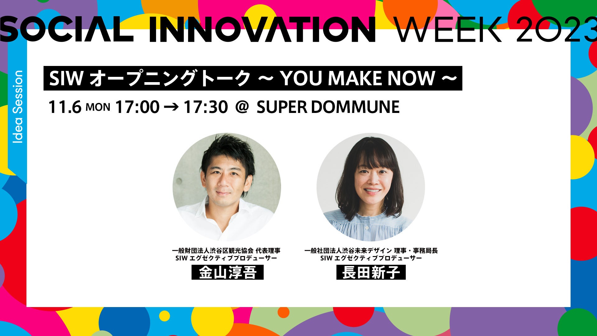 ヒカリエホールをメイン会場として、オフラインとオンラインのハイブリッドで、トークイベントやワークショップ、体験イベントや 展示ブース、ネットワーキングなど、新しいアイデアに触れる機会を1週間に渡り創出していきます。150を超えるプログラムと、総勢260名以上のスピーカーが参加し、渋谷・カルチャー・グローバル・サステナビリティ・女性などのキーワードでそれぞれの立場からの考察や、新たな気づきを視聴者とともに共有します。開催初日の11月6日(月)17時より「SIWオープニングトーク ~YOU MAKE NOW~」と題し、SIWエグゼクティブプロデューサーの金山淳悟と長田新子が見どころや楽しみ方について語るセッションをオンラインで配信します。