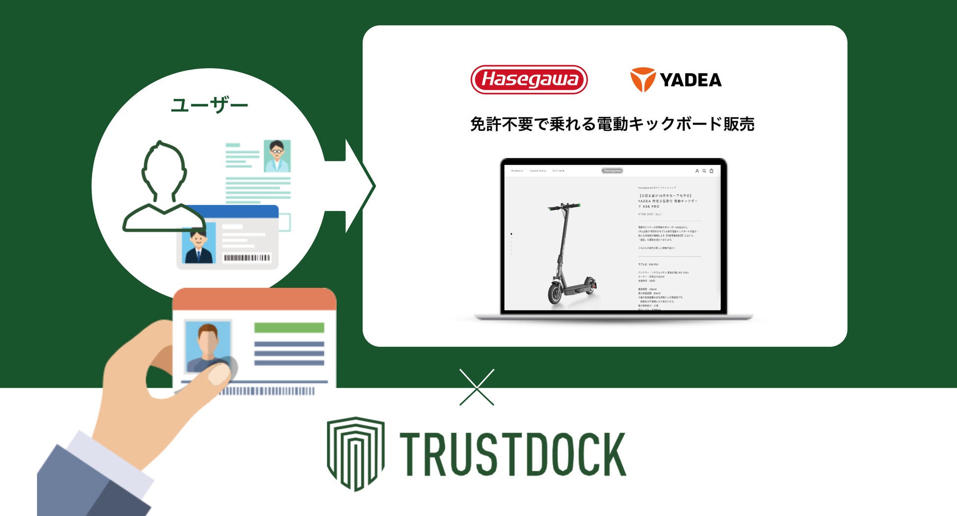 この度、TRUSTDOCKが提供するeKYC本人確認サービスを導入したことにより、特定小型原動機付電動キックボードを販売する際の本人確認(年齢確認)業務をスムーズに行なうことが可能となります。