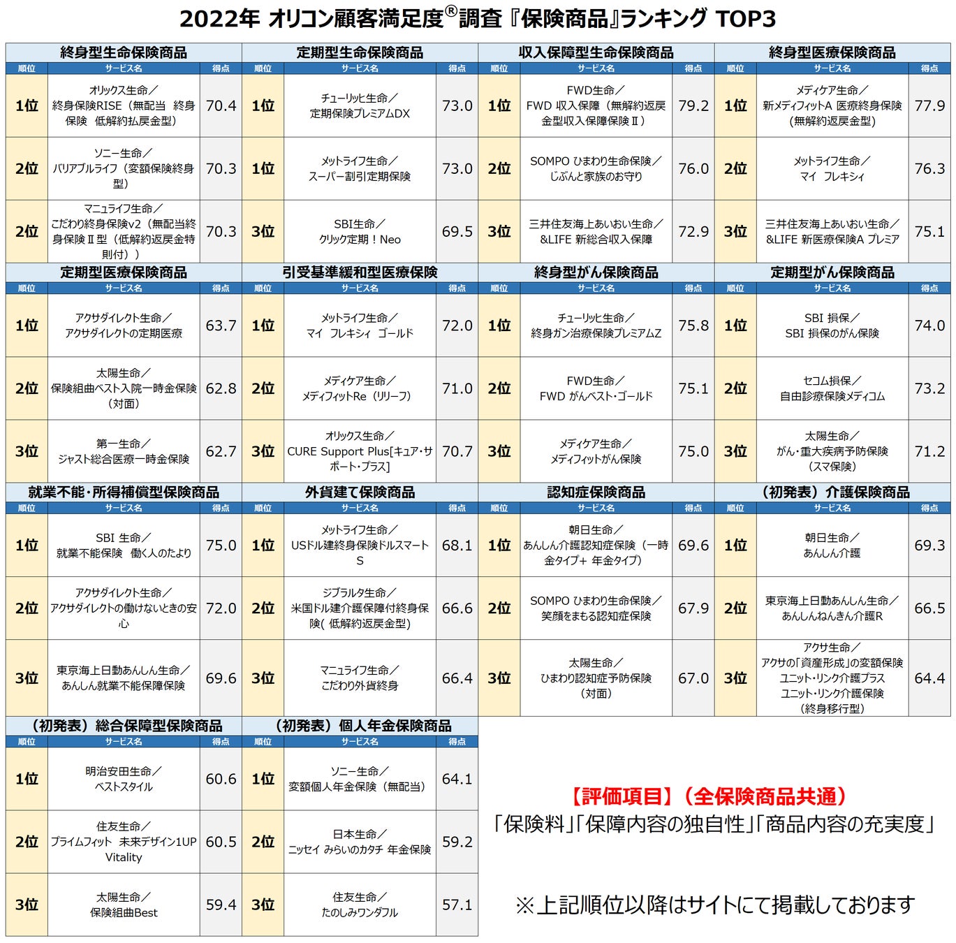 2022年 ファイナンシャルプランナー30人が評価した『保険商品』14ランキングを発表(オリコン顧客満足度調査)