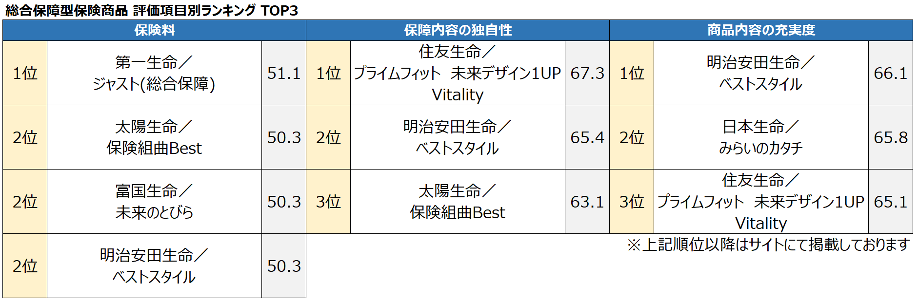 今回総合1位となったのは【明治安田生命/ベストスタイル】。評価項目別ランキングでは「商品内容の充実度」で1位となりました。