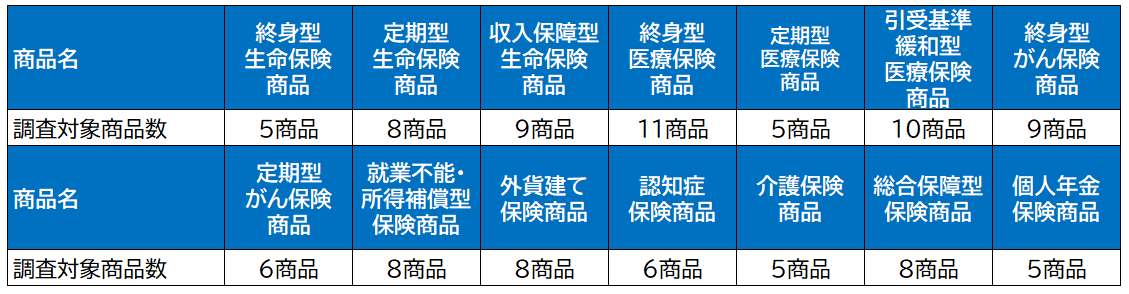 〇終身型生命保険商品 〇定期型生命保険商品 〇収入保障型生命保険商品