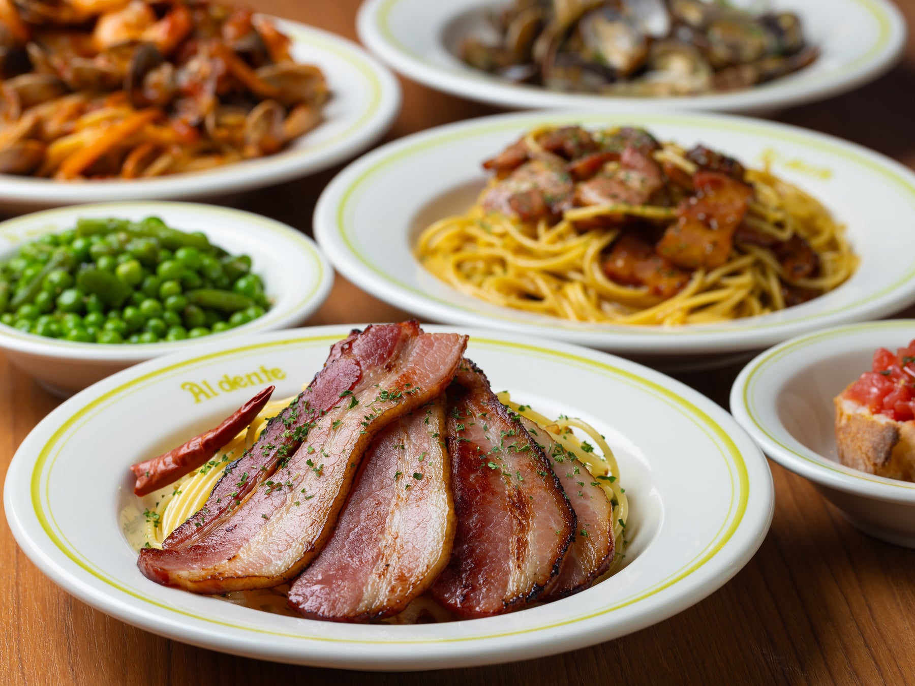 あるでん亭は、1977年に銀座で創業しました。店名の通りアルデンテにこだわったスパゲッティ専門店として多くのファンに愛されてきました。特注の“回転式茹で釜”で絶妙な茹で加減に仕上げたコシの強い麺が特徴で、創業当時より守り続けるレシピはイタリアをはじめとする海外の著名人も通うほど。イタリアの航空会社のクルーから直接教わったレシピ「アリタリア」はあるでん亭の看板メニューのひとつです。