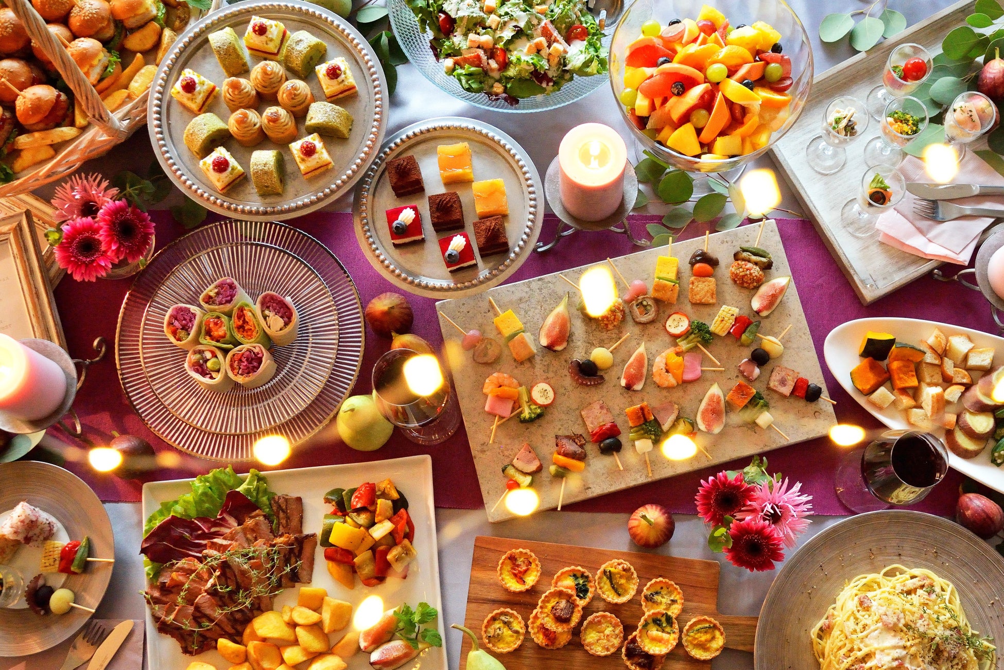 片手で摘まみやすいピンチョスや、お腹にたまるご飯もの、スイーツなどご用意させていただきます。