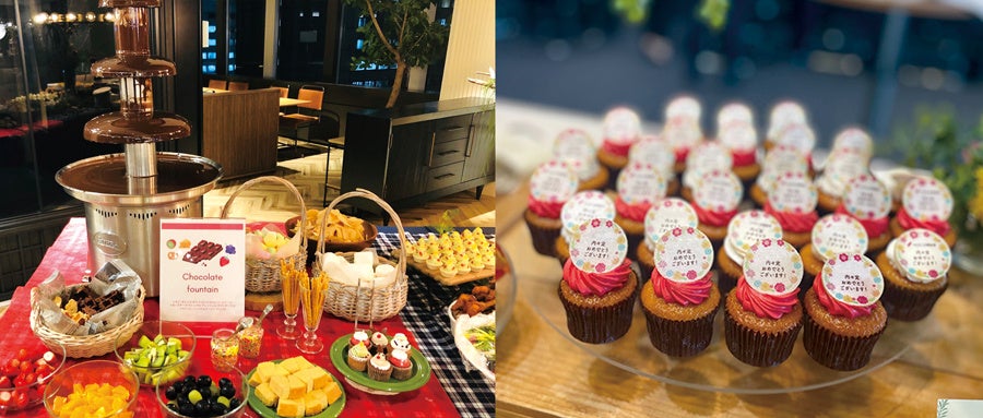 ■チョコレートフォンデュ、オリジナルメッセージ入りカップケーキ