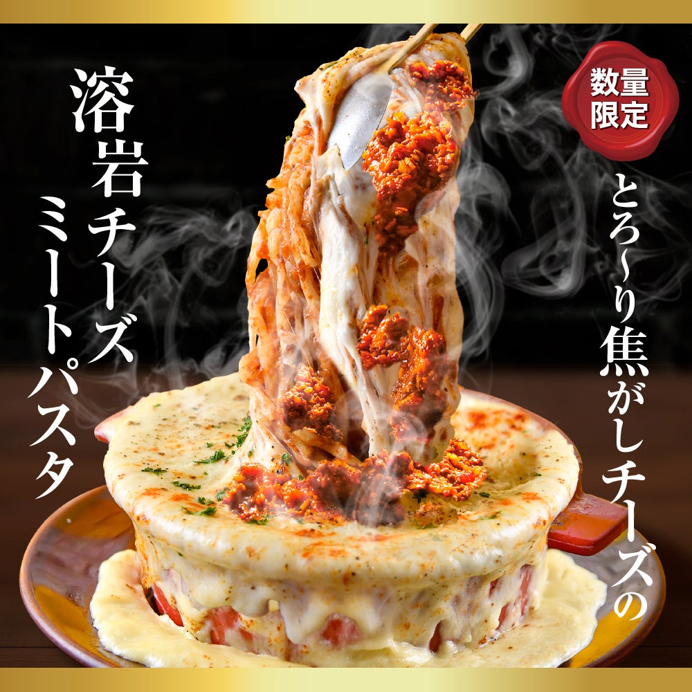 器の外まで溢れんばかりのチーズと溶岩のようなミートソースがやみつき。ずっしりモチモチ食感の溶岩チーズミートパスタ!