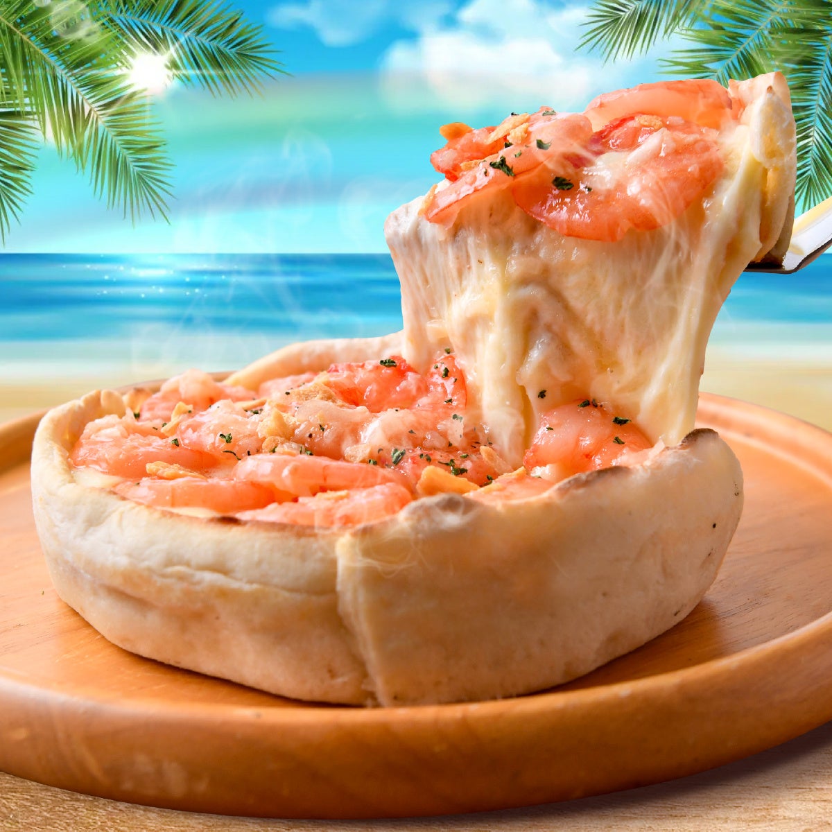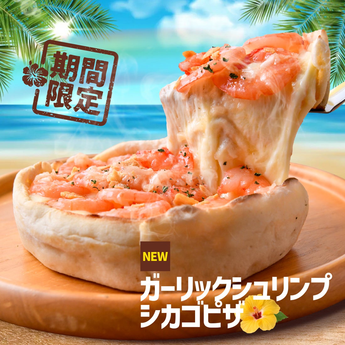 夏にぴったりな”ガーリックシュリンプ”をガツンと乗せた、ハワイアンスタイルのシカゴピザ!