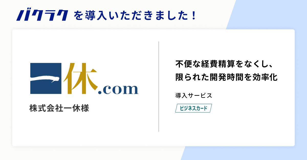 このたび、株式会社一休に法人用クレジットカード「バクラクビジネスカード」が導入されました。