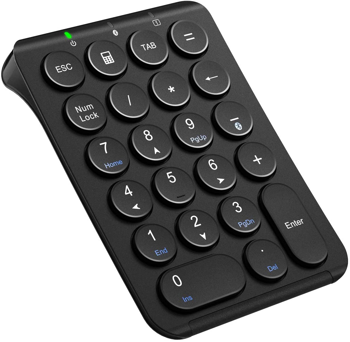 ケーブルが不要なBluetoothテンキーです。特殊な丸いキーでタイプミスを減らします。数値入力のほか、ショートカットキーを設定すれば、デジタルイラストの左手デバイスとしても活用できます。バッテリーは便利なType-C充電式を採用し、1時間でフル充電ができ、約40時間の連続使用が可能です。軽量かつコンパクトで持ち運びにも適しています。