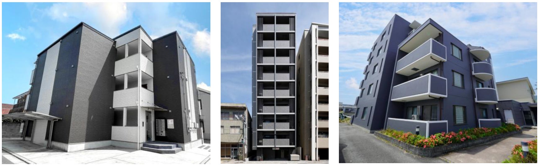 (左から)新築一棟木造アパート、新築一棟RC造マンション、中古一棟リノベーション物件