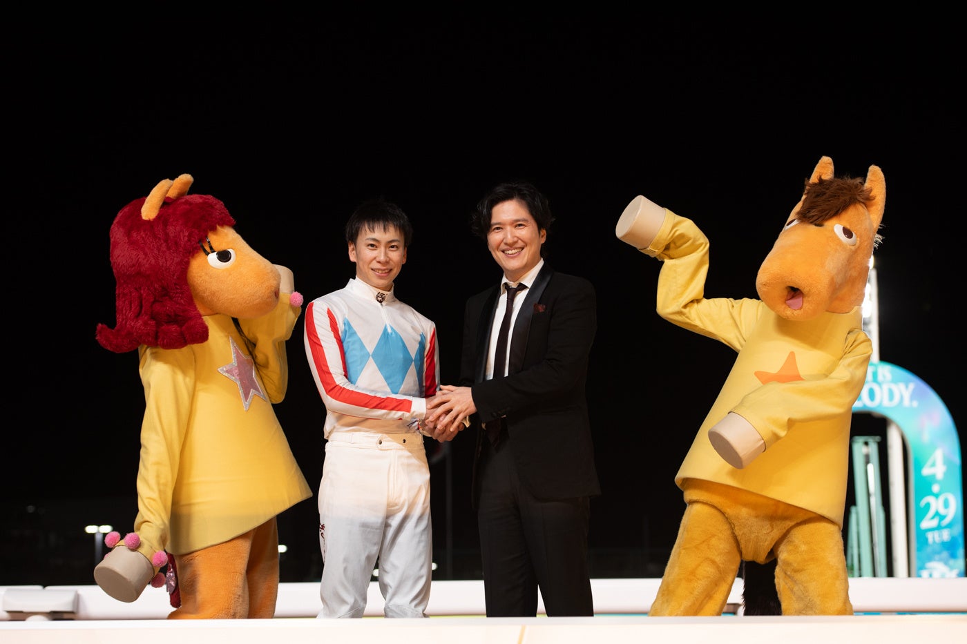 東京シティ競馬(TCK)では、本日4月29日(祝火)に、地方・JRA の全国からトップクラスの3歳馬が集結する3歳ダート三冠競走の初戦「羽田盃(JpnⅠ)」を実施しました。羽田盃のゲストキャラクターに就任した清塚信也さんが来場し、表彰式プレゼンターを務めていただいたほか、レース前にはトークショーも実施し、記念すべき第70回の羽田盃を大いに盛り上げていただきました!