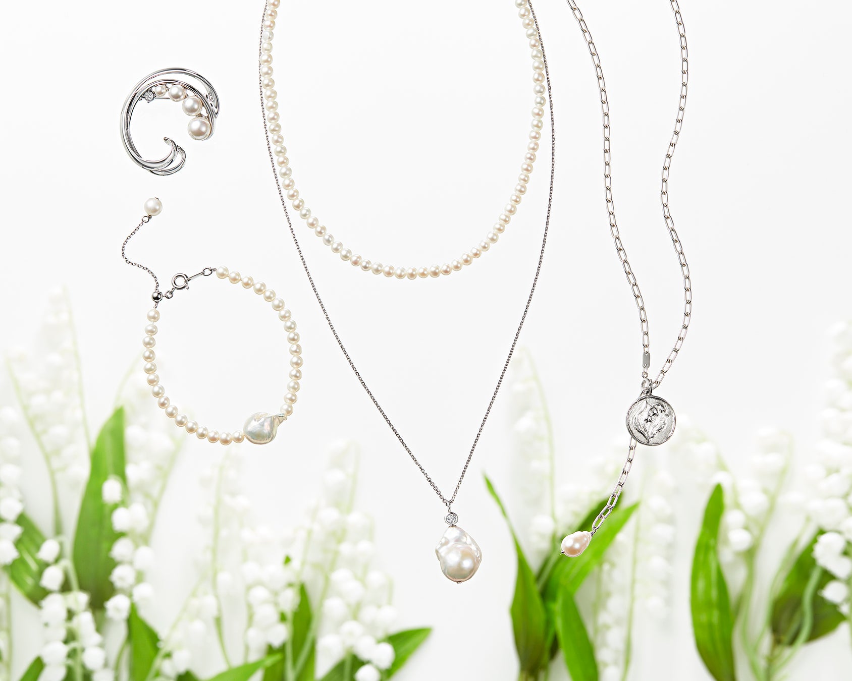 すずらんの花をバロックパールで表現したペンダントと淡水パールネックレスがセットになった特別感のあるアイテムが登場。同じ形はひとつとない個性的なフォルムが魅力のバロックパール。自然が育む美しいパールのセットは、スタイリングに華やかさをプラスしてくれます。