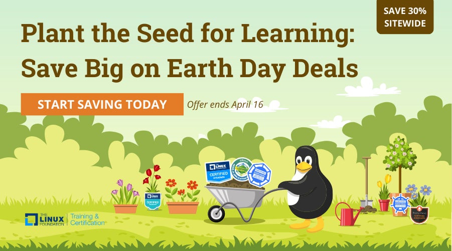 新しいスキルの習得や仕事のネットワークづくりなど、経験を積み重ねて職務範囲を広げていく過程で、だれしも定期的に成長するための努力をしています。Linux Foundationのオンラインコースと認定試験が30%割引になるアースデーキャンペーンで節約しながら、キャリアガーデンを育成するのに今が最適な季節です。