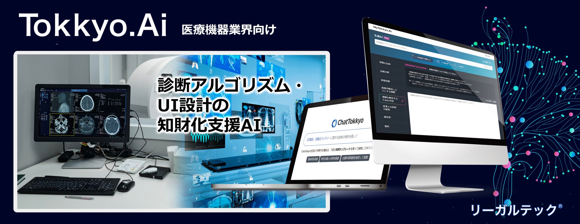 2025年5月29日 リーガルテック株式会社(本社:東京都、代表取締役:佐々木 隆仁)は、医療機器および診断装置業界において急増するAI診断技術やソフトウェア医療機器(SaMD)の知財化を支援するため、特許戦略AIプラットフォーム「Tokkyo.Ai」の提供を正式に開始しました。