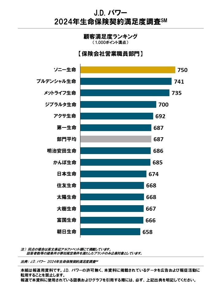 J.D. パワー 2024年生命保険契約満足度No.1を発表