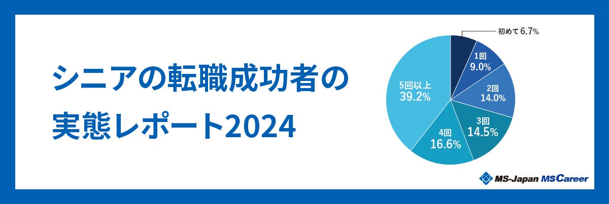 株式会社MS-Japan(本社:東京都千代田区 代表取締役会長兼社長CEO:有本隆浩/以下MS-Japan 証券コード:6539)が運営する、管理部門・士業の総合転職サービス「MS Career(エムエスキャリア)」は、「シニアの転職成功者の実態レポート2024」を発表しましたので、お知らせいたします。