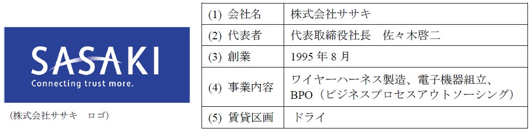 霞ヶ関キャピタル株式会社(本社:東京都千代田区、代表取締役:河本幸士郎、以下「当社」)は、当社が開発用地のソーシングおよび企画立案をおこない、アセットマネジメント業務を受託している宮城県仙台市の物流施設『LOGI FLAG DRY & COLD 仙台泉I』の一部区画におきまして、株式会社 ササキ(本社:山梨県韮崎市、代表取締役:佐々木 啓二)がテナントとして決定いたしましたので、お知らせいたします。