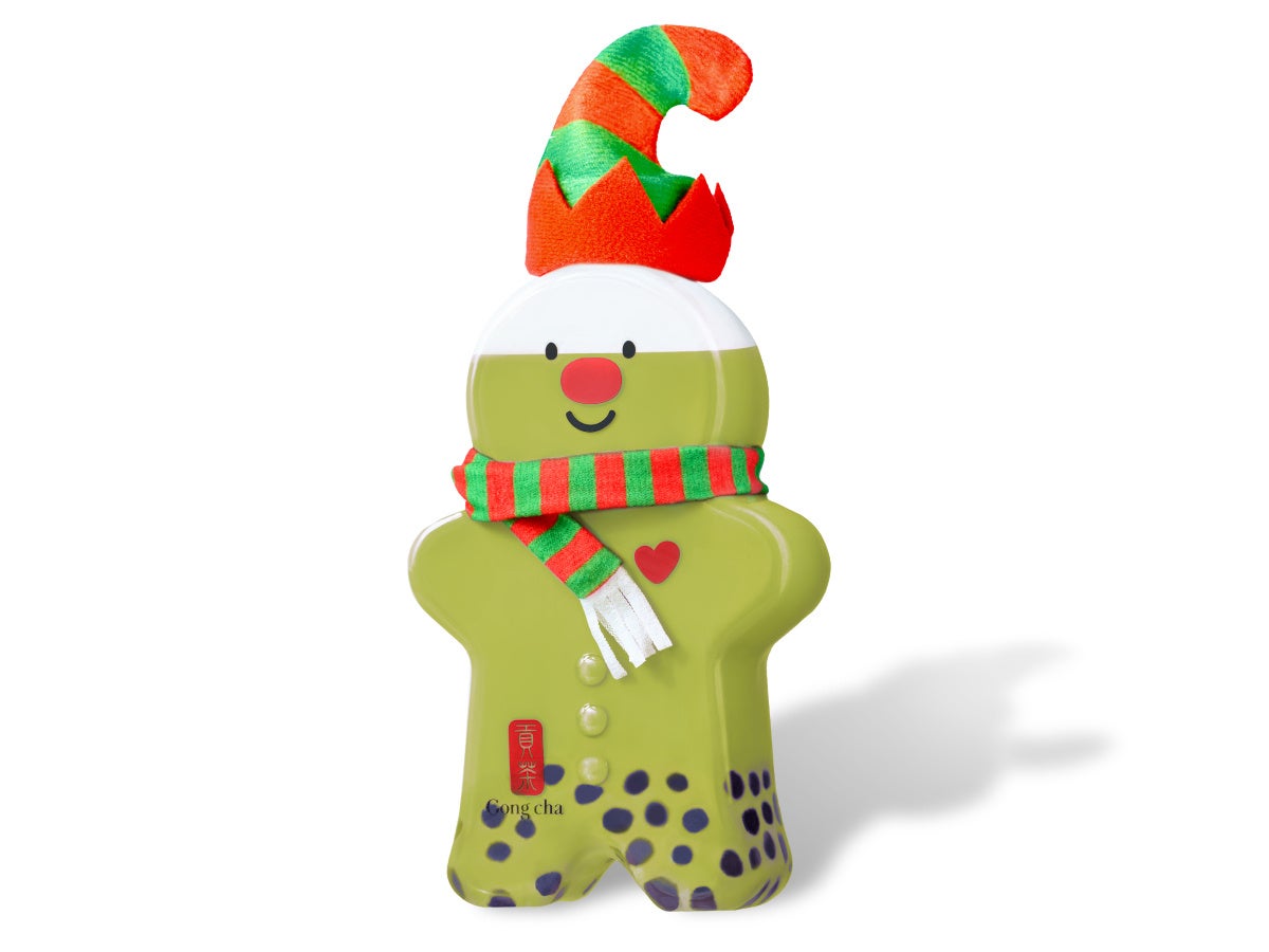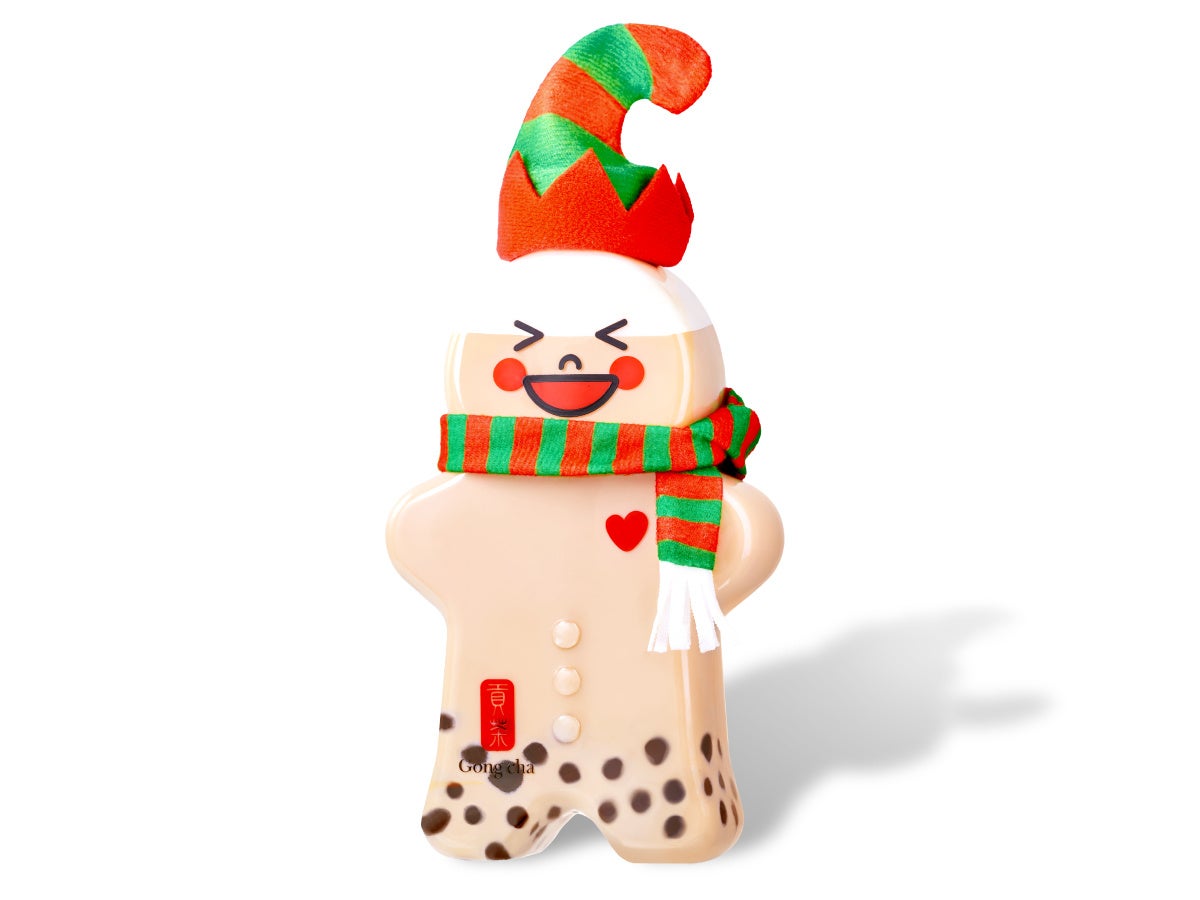 帽子とマフラーをまとった愛らしいジンジャーブレッドマンデザインの限定ボトルに、ゴンチャ一番人気の「ブラック ミルクティー」をイン。さらにパールとミルクフォームをトッピングしました。飽きのこないすっきりとした風味でありながら、お茶本来の深い味わいが楽しめます。