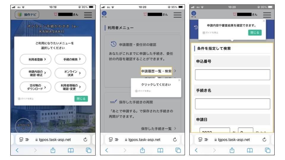 個人、事業者向けの手続きで、各種申請に操作ガイドやナビゲーションを順次実装し、市民の利便性向上を進める予定です。