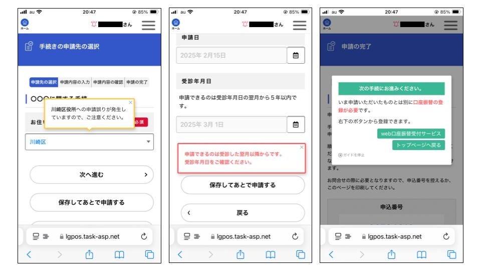 「オンライン手続かわさき(e-KAWASAKI)」:https://lgpos.task-asp.net/cu/141305/ea/residents/portal/home