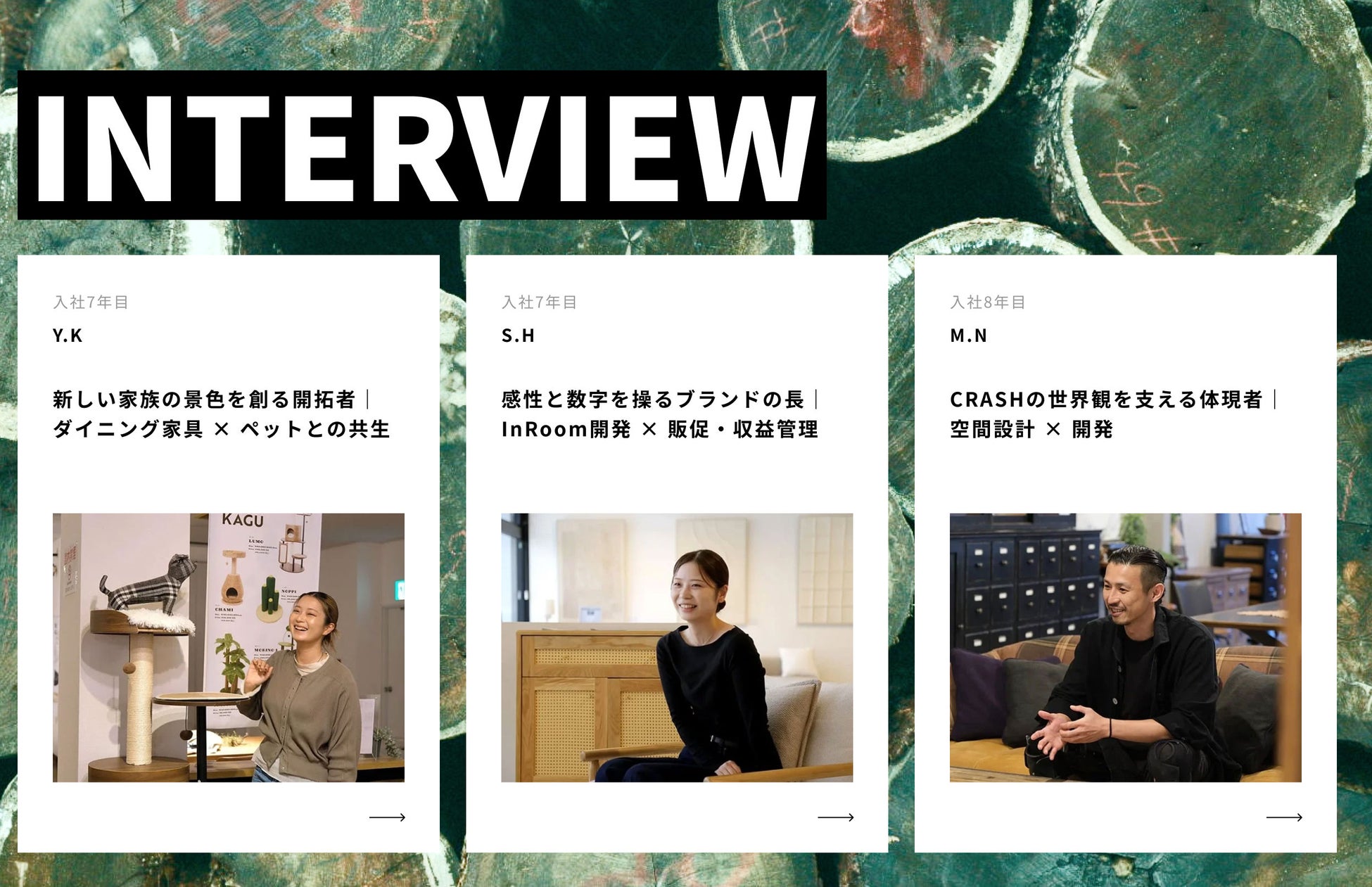③多様なキャリアが伝わる、社員インタビューを多数掲載