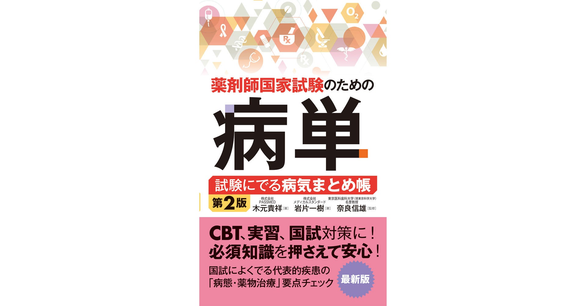 薬剤師国家試験、CBT、実務実習に役立つ『薬剤師国家試験のための病単 試験にでる病気まとめ帳 第2版』刊行!「病態・薬物治療」のコンパクトな参考書の最新版です。