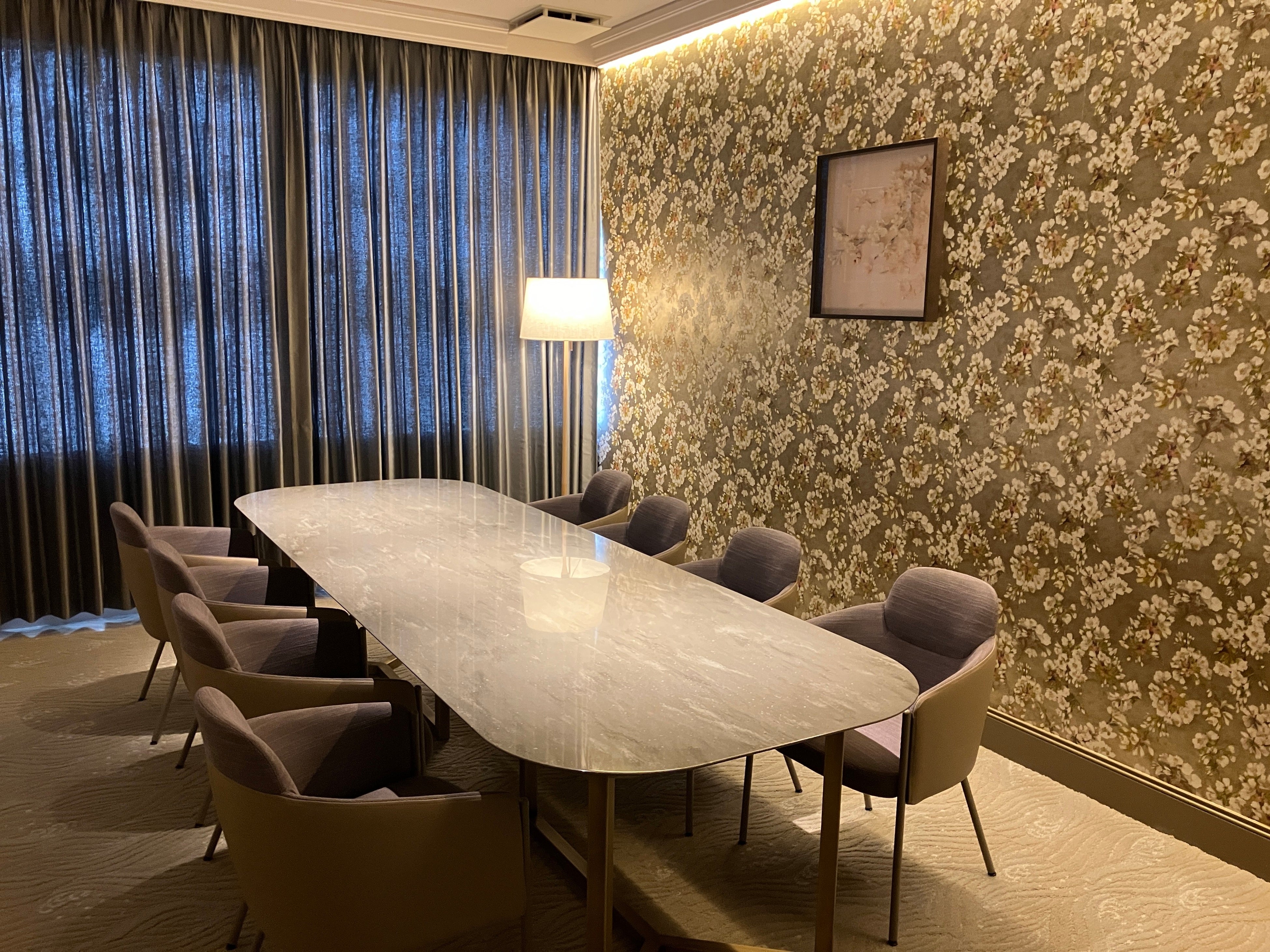 「レセプションルーム」は、1室あたり大人2名様から最大8名様までご利用いただける、会場内でも貴重な完全個室のダイニングスペースです。本格的なフレンチを、ゆったりとご堪能いただけます。記念日や接待、海外からの賓客のおもてなしなど、特別なひとときにふさわしい空間として設計されており、非日常の静けさと美食が融合した“記憶に残る体験”をご提供いたします。