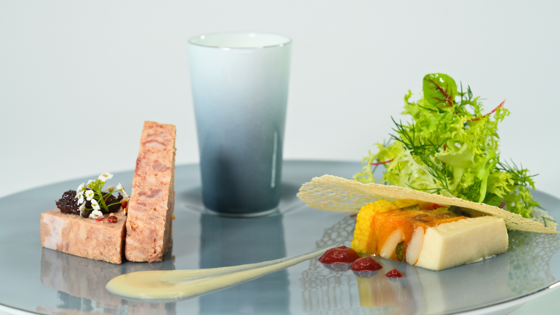 ・カリフラワームースを引き立てる華やかな野菜のテリーヌ