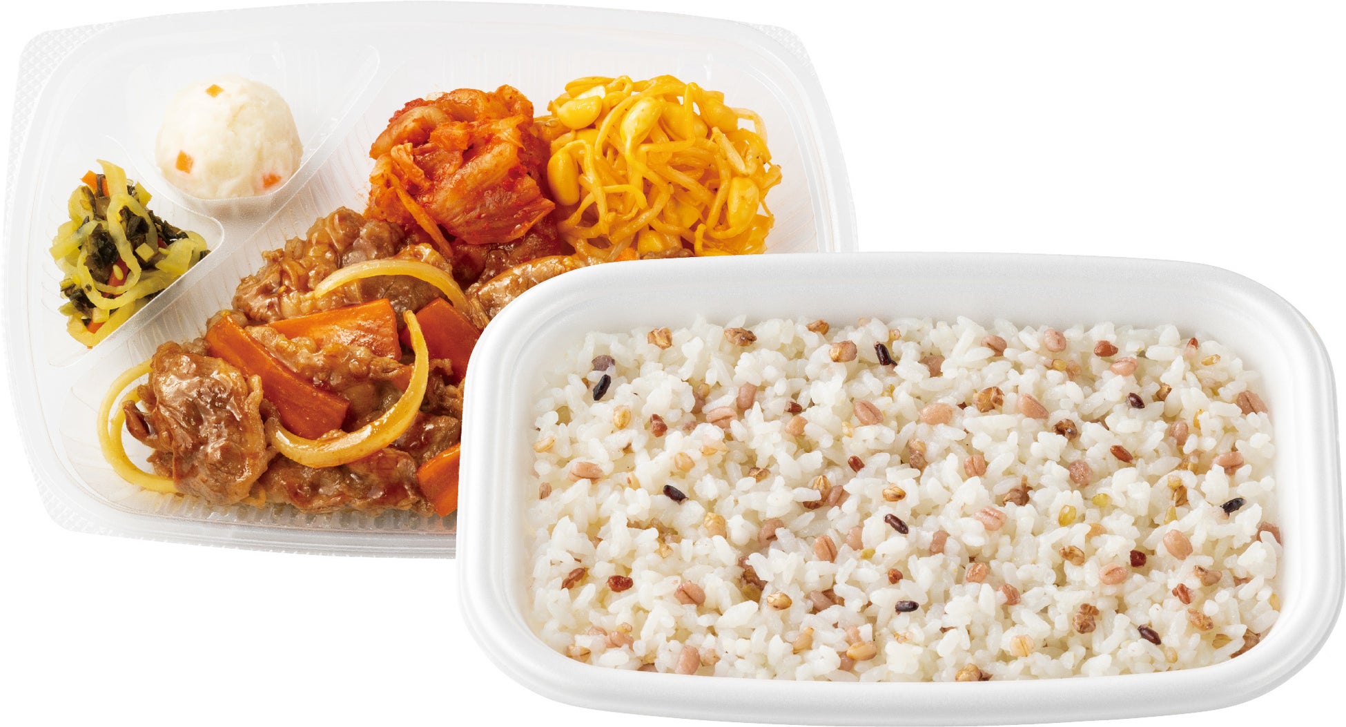 また同日より、『から揚弁当』などのおかずとごはんの容器が別々になっている商品のごはんが、プラス20円で『もち麦入り金芽ごはん』に変更できるようになります。