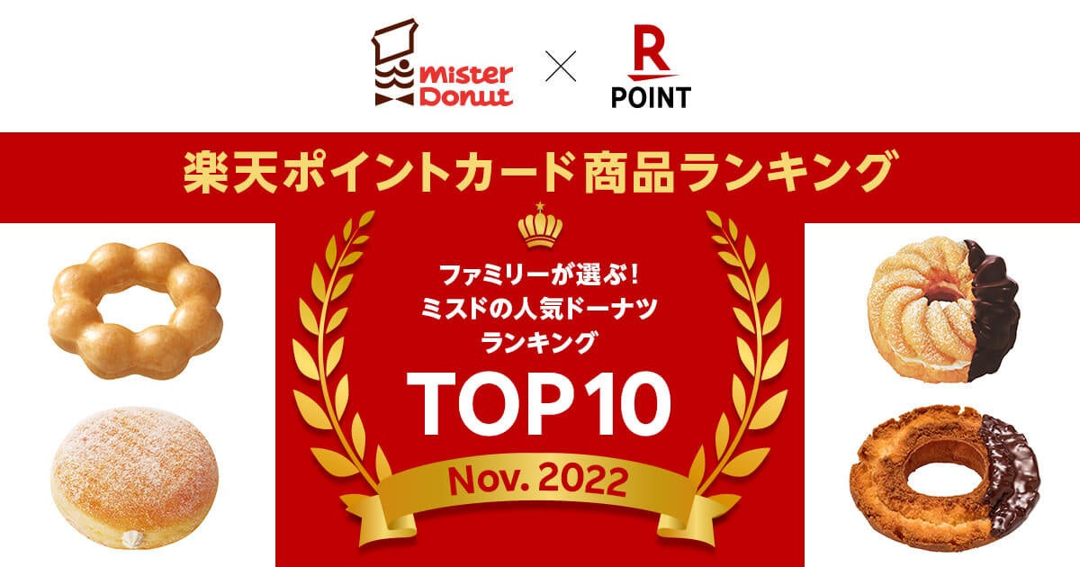 楽天ペイメント株式会社(以下「楽天ペイメント」)は、「楽天ポイントカード商品ランキング」において「ファミリーが選ぶ!ミスタードーナツの人気ドーナツTOP10」を発表しました。