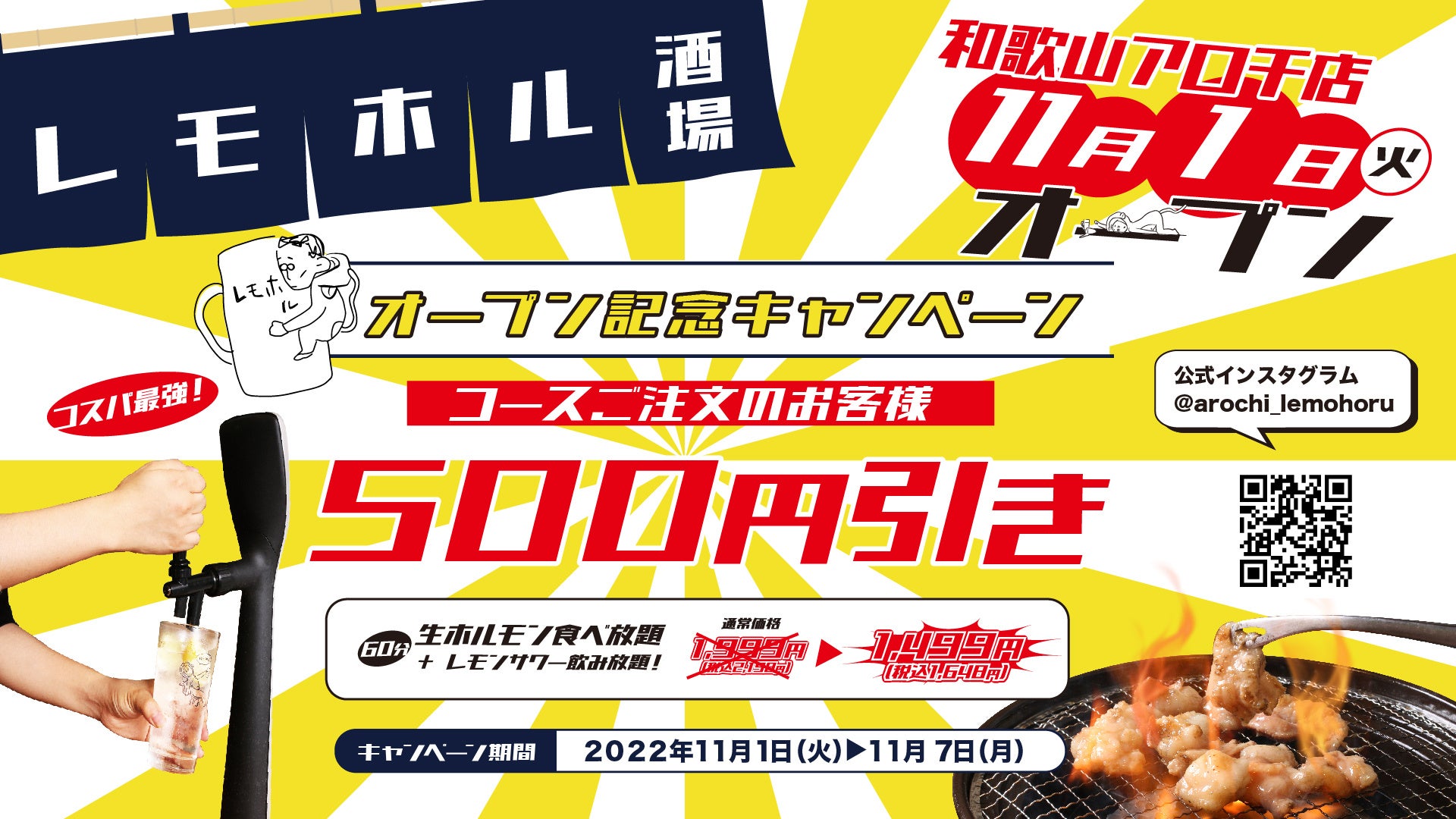 来たる2022年11月1日(火)和歌山県・新内にOPEN決定! ネオ大衆居酒屋「レモホル和歌山アロチ酒場」