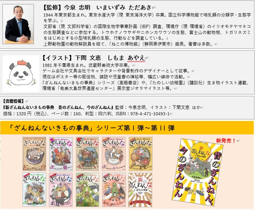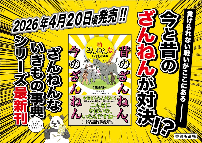 株式会社高橋書店(本社:東京都豊島区、代表取締役:清水美成)は、2026年4月20日に、「ざんねんないきもの事典」シリーズ最新刊で第11弾となる『新ざんねんないきもの事典 昔のざんねん、今のざんねん』(監修:今泉忠明)を全国の書店・オンラインストアで発売します。