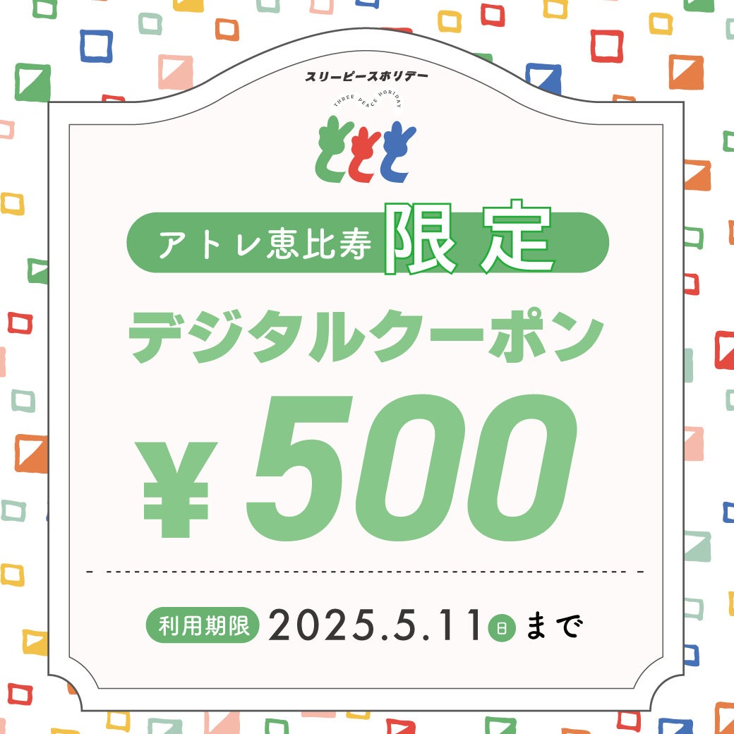「スリーピースホリデー 2025」期間中に開催される対象のイベント参加者限定で、アトレ恵比寿でご利用いただける「500円」のデジタルクーポンをプレゼントします。