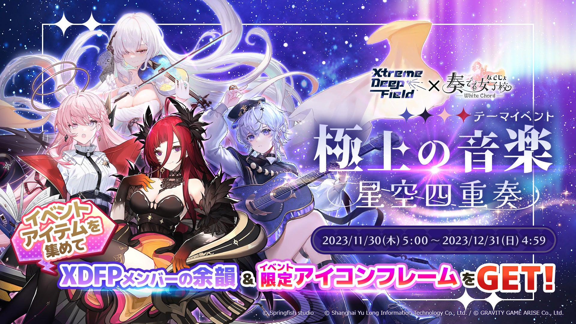 2023年11月30日(木)から開催中のコラボイベント「極上の音楽 星空四重奏」は、12月31日(日)4:59までお遊びいただけます。