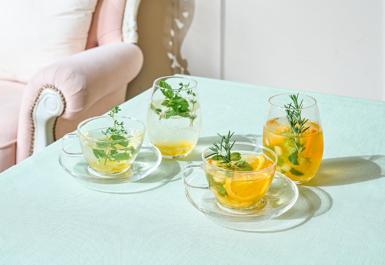 ユズのやわらかな酸味と、清々しいタイムやミントをマリアージュさせたハーブドリンク。