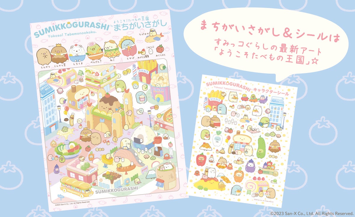 すみっコぐらしの最新アート「ようこそたべもの王国」☆ ねーねーにも、たっぷり掲載しちゃいました。まちがいさがし、シール、あつがみふろくで、たべもの王国の世界をたのしもう! あつがみふろくの「ポップアップカード」は、ふろくについてくるすみっコたちのお野菜シールを貼ってデコるのも、ちょーかわいいよ!