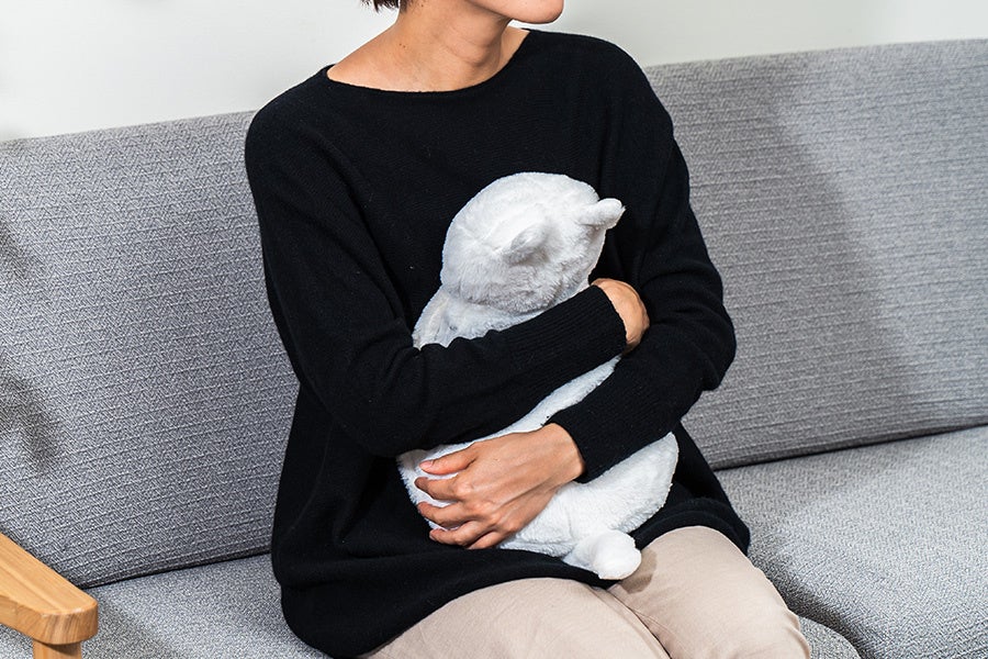 この手軽さと、まるで本物の猫を抱っこしているような温もりとふわとろな肌触りで話題となり、